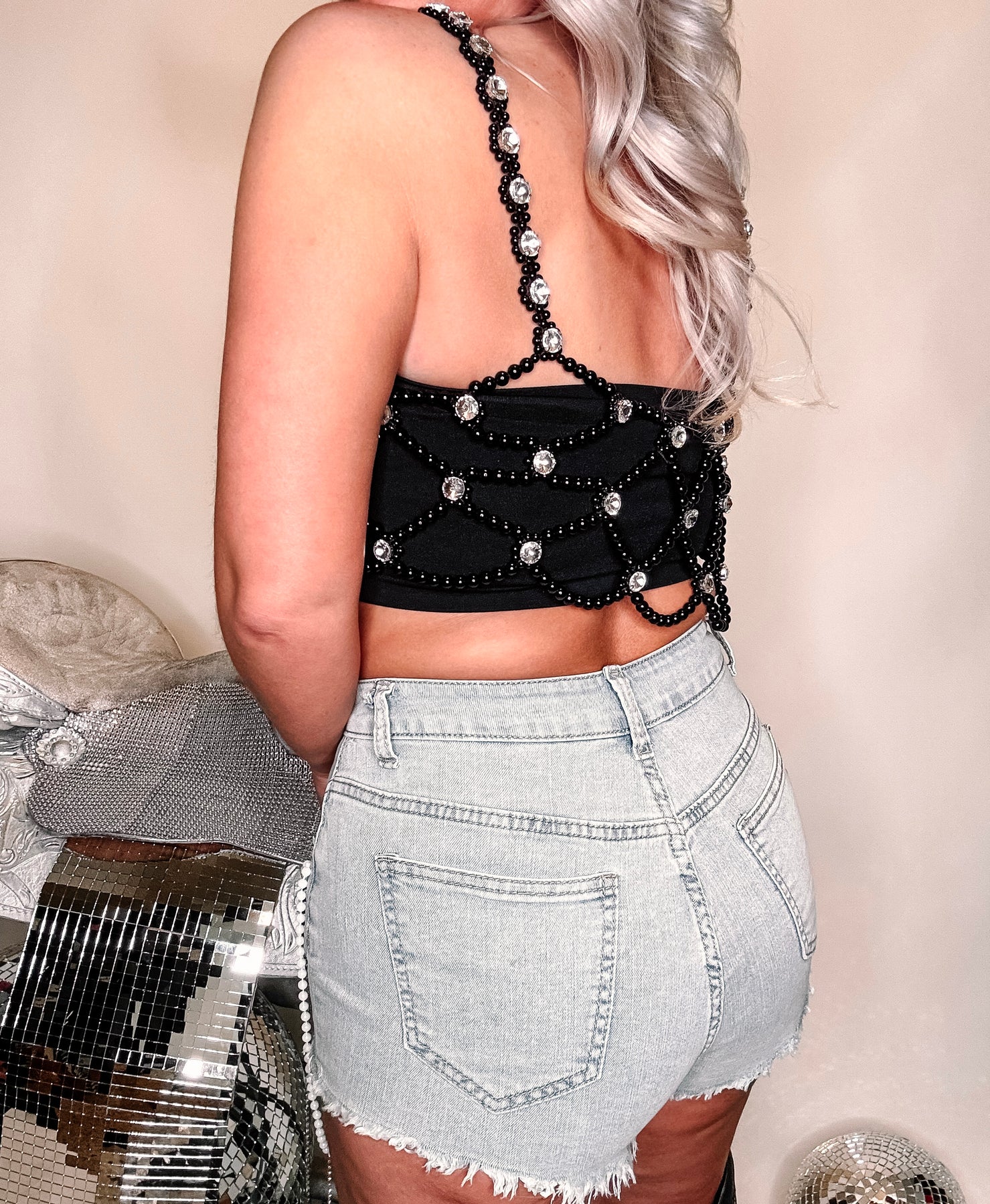 🪩Color: Light Denim with rhinestone and pearls
